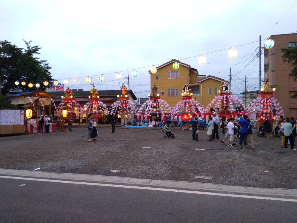 明治時代に政府が神社の数を減らすために1町村に1社となるように定められたことにより、御魂は氷川社に移されましたが祭礼は今でもここで行われています。中でもさいたま市指定の無形民俗文化財「砂の万灯」は7基の万灯が立ち並ぶ壮観な祭りです。