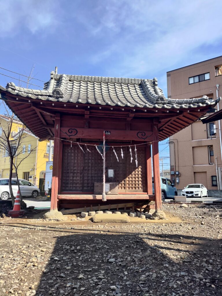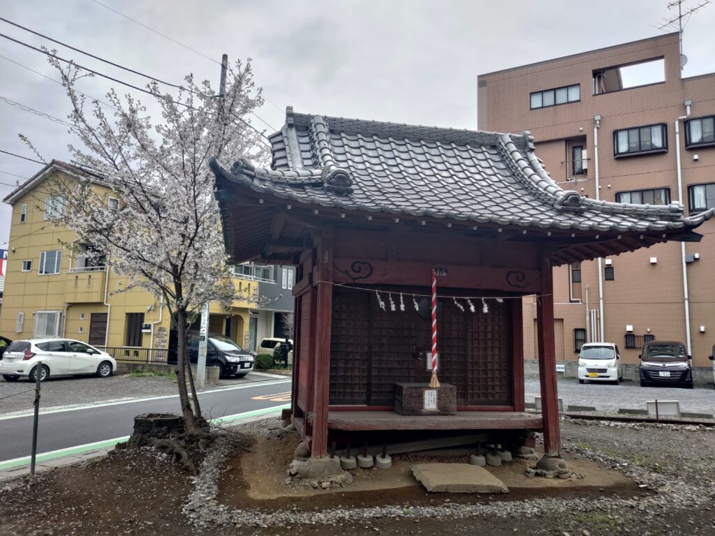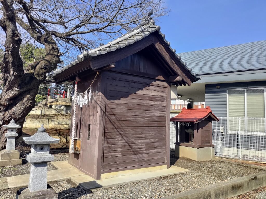 創建は明和7年(1770年)と伝えられています。昭和40年頃迄はこの一帯は農村地帯で稲作や畑作が盛んに行われており、鎮守として人々の暮らしに深いかかわりを持っていました。境内には八雲社、天神社、馬頭観音堂、御嶽塚、神木の大ケヤキなどがあります。