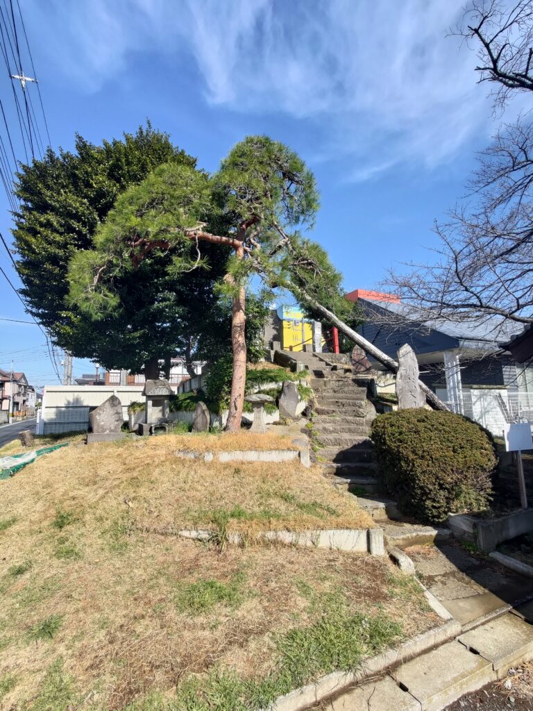 天神社の隣ある小高い山の頂にあるのは御嶽信仰の石祠です。頂まで登山道に見立てた道があり、傍らに阿夫利神社、松尾神社、武蔵国御嶽大神、秋葉神社、東照宮、旧八雲社、岩戸山神社、天照大神、鬼鎮三柱大神などの石祠を祭っています。